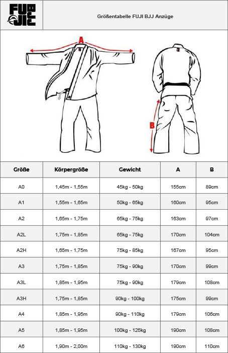 Größentabelle FUJI BJJ Anzüge