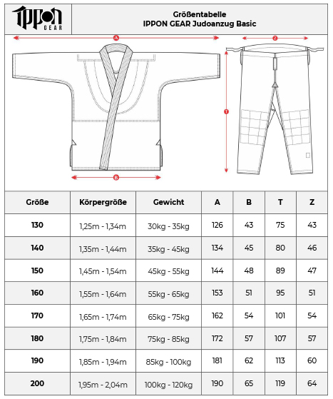 Größentabelle IPPON GEAR Judoanzug Basic